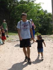 Furthermore, the members of St. Paul’s thoroughly enjoyed playing with the children from the villages. Every morning, the children met the bus at the beginning of the path, and then held hands with a student the whole way into Loma Linda. It was quite adorable to see the children continually ask for stickers, with which they would place all over their bodies. Apart from the “estickers,” attempting to communicate with the children was quite fun. Notably, it was touching to observe Mr. Whitfield spend so much time amusing the children, even teaching many to count to ten in English. At the end of each work day, most students would cool off by playing with the children in the river.