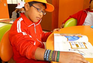 Each bracelet has a different color that represents a certain amount of books that the wearer has read. By incorporating these bracelets, which the children find beautiful, this Fe y Alegría school has accomplished what educators are finding increasingly difficult. This message is written on the bracelets themselves: Me gusta leer. I like to read!