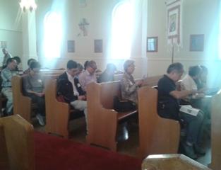 During lunch I began taking pictures of the 61 retreatants; and on a lark bounded up to the balcony of the church to take more pictures.