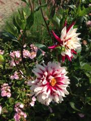 Finally at the farm I sit hidden by the tall corn stalks eating peas in my mother’s massive garden– the pumpkin, melon, cucumber vines stretching beyond the garden limits– enjoying the orderly columns of potatoes, lettuce, peas, carrots, amidst stands of cornflowers, poppies, Maltese cross, Cosmos, and the hundreds of gladiola! — a far cry from the community garden I saw this morning a half block from the Jesuit residence on Young Street with its wooden board sporting notes and messages and its few rows of plants.
